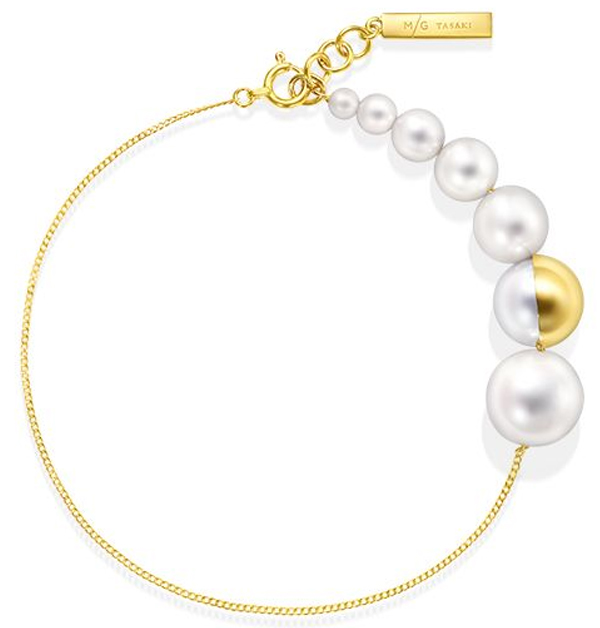 以珍珠設計見長的日本田崎(Tasaki),將「Shell」手鏈大小不一的珍珠依序排列,勾勒貝殼的自然形態。圓潤飽滿的珍珠展現華麗風格,優美點綴手腕間。珍珠以18K黄金包裹著,為這款風格雋永的手鍊增添迷人色彩。