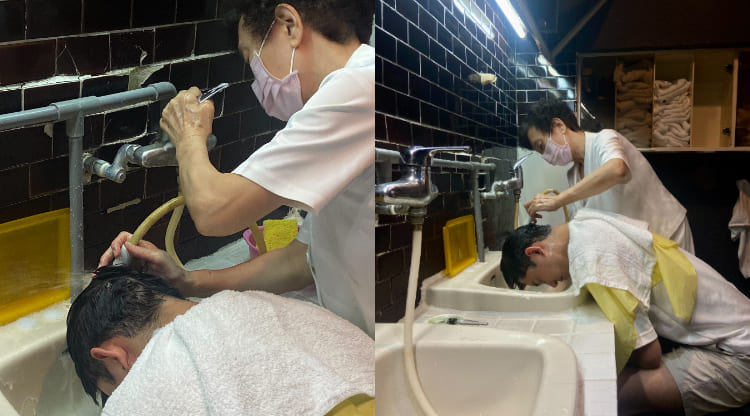 不誇張,進門等候的短短10分鐘,東來的預約電話就響了快20次!不分平日假日座無虛席,等候預約的客人更是排到一個月後,能有著如此驚人的好生意,或許都得仰賴東來八仙女親切且老練的好功夫!Maureen編此次預約的項目為:洗髮+做臉。傳統的坐洗式洗髮,能更感受到理容師靈活的搓洗功夫;待很有力度的搓洗按摩持續約5分鐘後,理容師會引導顧客至後方的舊式洗手槽沖洗,直接、豪邁的沖水方式,雖然沒有現今新式髮廊的躺洗舒適,但這項很有年代感的沙龍特色,仍舊能給予你我驚嚇中又帶點驚喜的奇妙體驗。