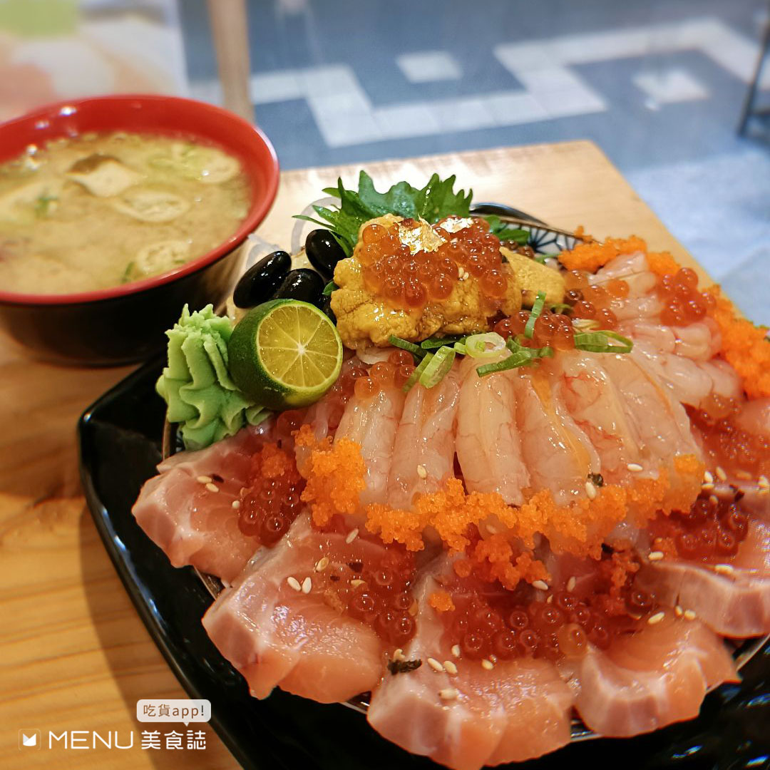 台北文山區高CP值生魚片丼!內用附味噌湯自助續,餐點現點現做,推薦小資海鮮丼,不用三百元就可以吃到多種刺身+磯煮鮑魚,每日魚種不同,整碗超鮮甜海味十足,新鮮度從魚片光澤就可以看出來!
