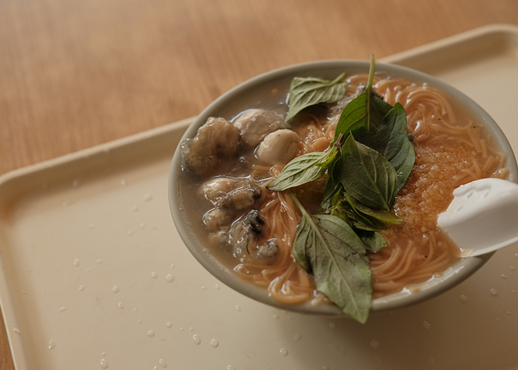 重口味的你請麻煩一定要加大醋、蒜頭多才夠味,由於最近香菜價格大飆漲,所以店家把原本的香菜換成是九層塔,但還是覺得有香菜才好吃啊!熱愛蚵仔的一定無法抗拒,他們家的鮮蚵本身各個都超巨大、超級肥,外皮有裹上一層太白粉增加口感,味道非常新鮮不會有腥味。大腸雖不是浮誇的入口即化路線,略帶嚼勁但不至於久咬不爛,能吃到醬汁魯的熟透的滋味,推薦給喜歡大腸的你。