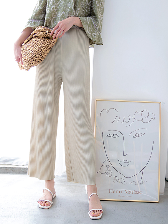 7.亞麻混紡打褶長褲