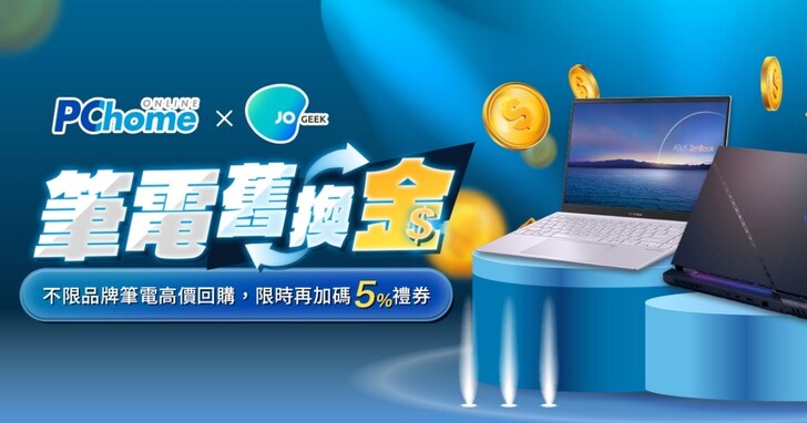 翔碩科技宣布與 PChome 網路家庭旗下 PChome 24h 購物合作「筆電舊換金」活動,除了可以獲得等值的 PChome 禮券外,於 10/31 前回收完成,還可再享額外 5% 禮券加碼。