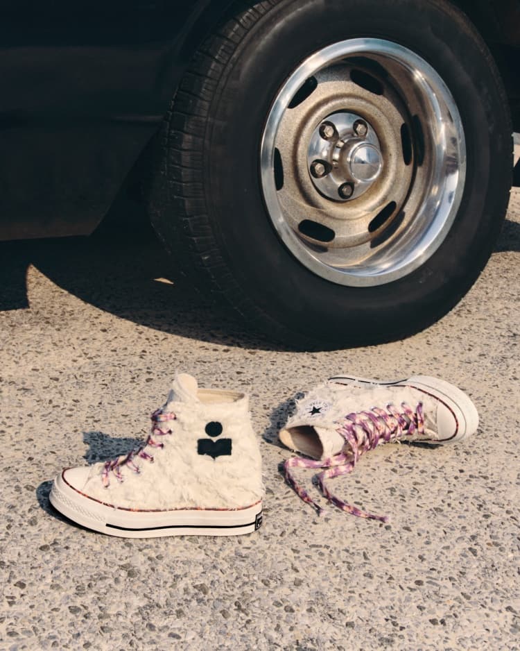 Converse 以其經典且經久不衰的 Chuck Taylor 系列在時尚界占據重要地位,而 Isabel Marant 則以自然灑脫、隨性的法式風格而聞名。此次合作,兩者巧妙結合,將 Isabel Marant 的法式優雅與 Converse 自由奔放的街頭風格融合,為 Chuck 70 系列注入新的生命力。毛邊鞋身、花卉鞋帶等細節設計,既保留了 Isabel Marant 一貫的獨特美學,也延續了 Chuck 70 一直以來的經典風範,無疑是一場文化與時尚的碰撞。