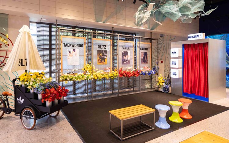 在復古經典拍照區則展示 adidas Originals 標誌鞋款,包含 T-TOE 家族標誌性 SAMBA 與最新勢力的 SL72 鞋款、及初登場就引起全台話題的 TEAKWANDO 系列全新鞋帶款,以繽紛花朵與復古台式玻璃窗花,帶大家重新認識近期攻佔街頭的大勢鞋款,一旁的復古拍貼機,則帶來韓國最受歡迎的電梯視角,讓大家與好友能留下最萌、最 Y2K 的紀念照。