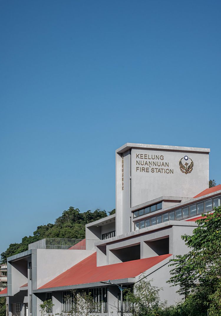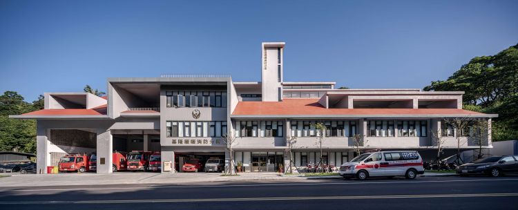 基隆市暖暖消防分隊自 2017 開始設計,耗時五年,於 2021 年完工,透過梳理地形、氣候與空間形式的關係,體現機能規劃與都市韌性,為基隆市迎來嶄新的視覺樣貌。透過「穿透」的開口設計,弱化四層樓的建築量體,串連其鄰里社區、活化在地發展,與此同時,也拉近人與消防局與消防員之間的距離。