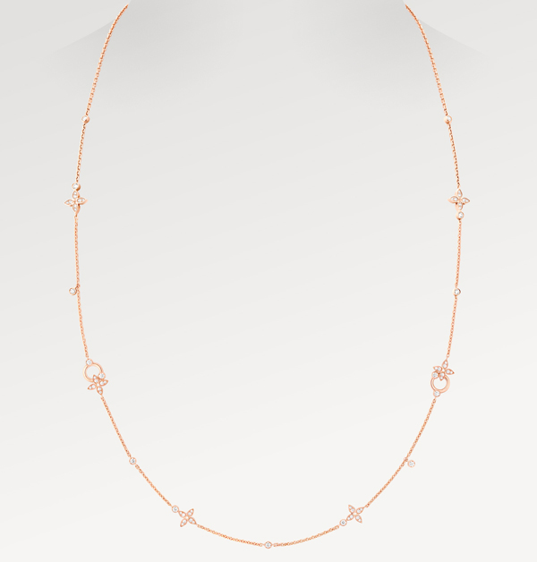 玫瑰金鑲嵌鑽石長鍊,NT$ 380,000。