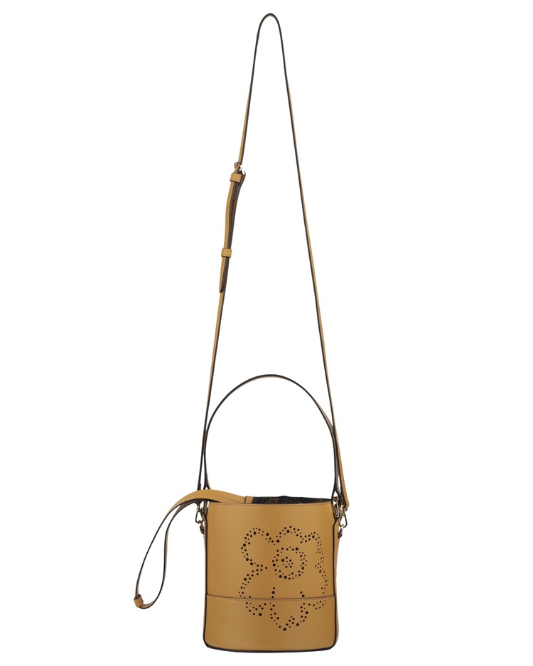 Marimekko 早秋推薦:imprint 系列太妃糖棕 Unikko 簍空切割花形水桶包