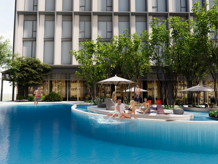 根據《台中勤美洲際酒店》官網的介紹,該建築設計融合台灣高山海拔意象,明亮的現代風格店墜自然景觀,內部的空間設計呈現當代奢華的風格,酒店五樓設有 24 小時開放的健身中心,並於男士更衣室設有桑拿烤箱,女士更衣室設有蒸氣室,更提供室外游泳池,集合多樣的便利設施與服務,為所有旅人打造更舒適的空間。