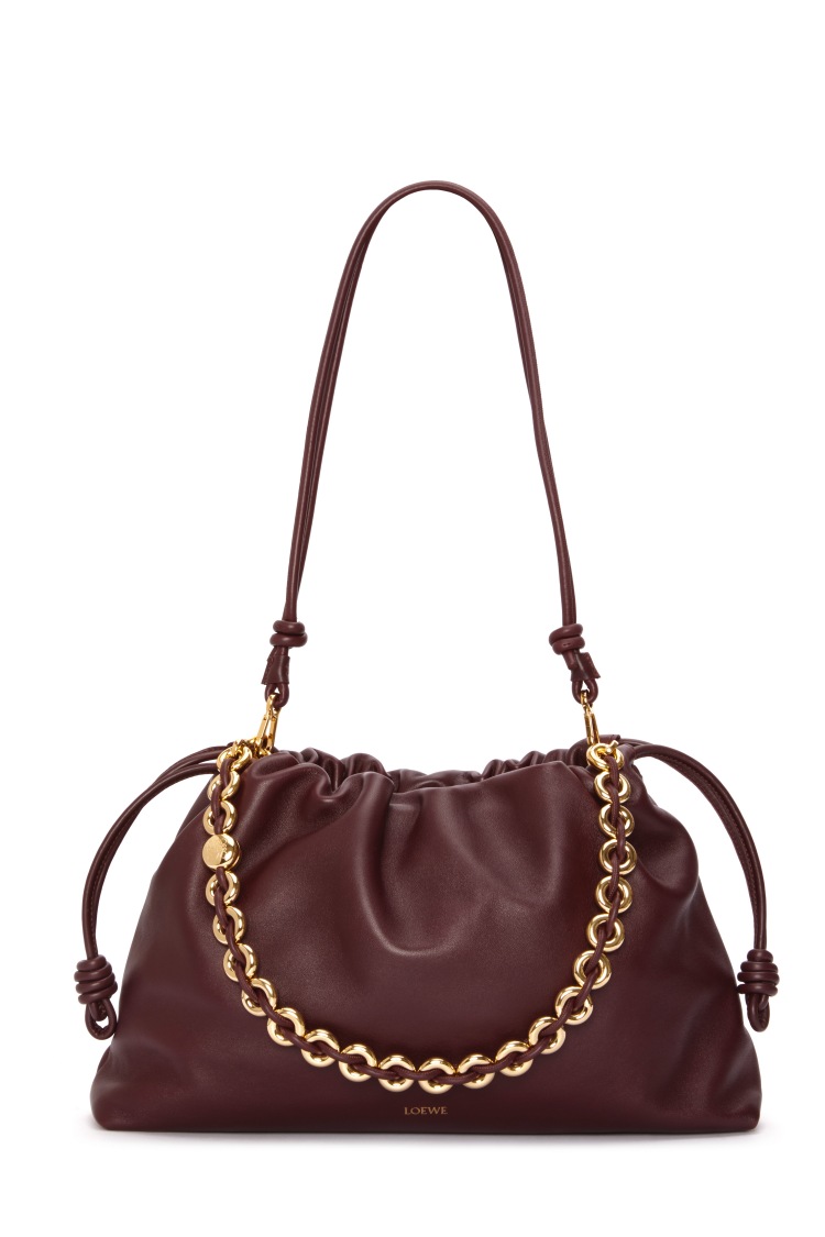 在創意和商業上都很在行的Loewe,看準經典包款在市場上的不敗優勢,選擇從輪廓、材質下手改造,這顆「雲朵大包」就是從Flamenco手拿包得到靈感,澎澎納帕皮革、甜甜圈造型金屬鏈帶,可愛到讓人一秒失心瘋!(售價:NT$139,000)