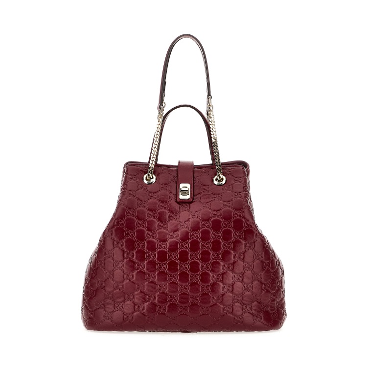 Gucci創意總監Sabato De Sarno很懂包袋市場的潛力有多大,自從上任以來就使出了「包海戰術」,也很聰明主打Russo Ancora紅色創造存在感,例如這款「Leather GG」鏈袋托特包,酷似口金包的特殊造型和GG Logo立體壓紋,成功抓住全球媒體還有買手們的眼球!(價格店洽)