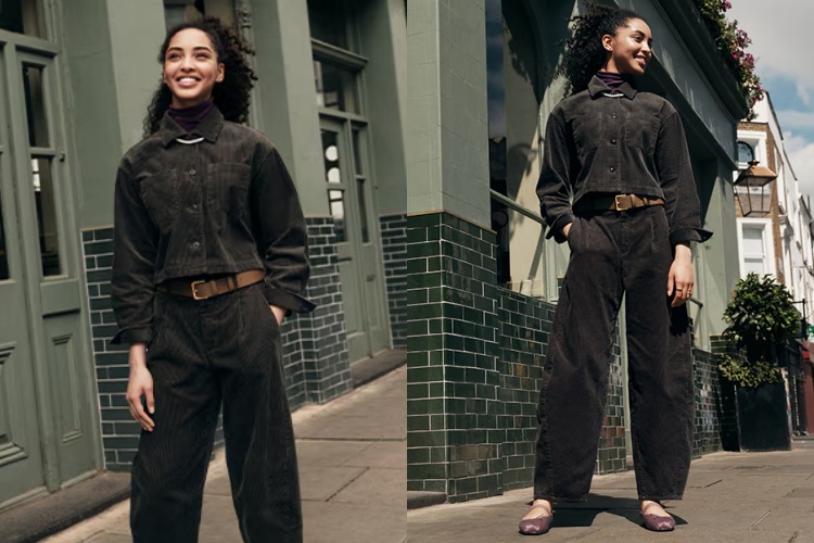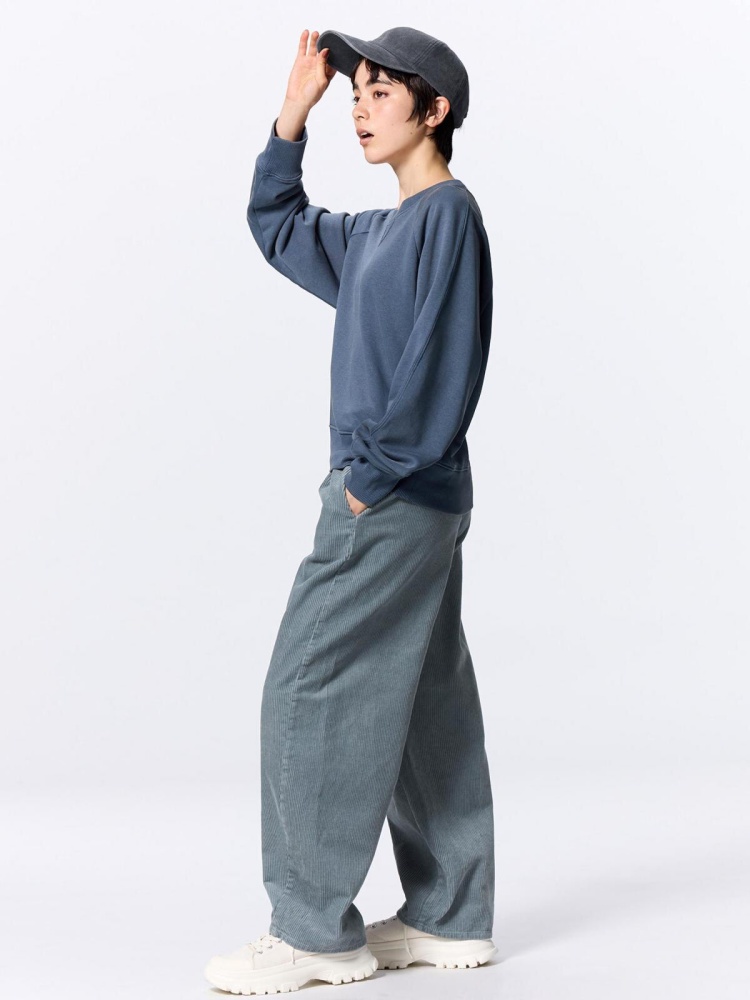 燈芯絨材質是秋冬季節的必備元素,GU 推出的燈芯絨錐形褲利用細條紋布料,提升了整體造型的細節感。這款褲子不僅具備了高質感的外觀,還以保暖舒適的特性成為秋冬穿搭的最佳選擇。若搭配同材質的上衣,便能打造出整體感極強的「SET-UP 造型」。