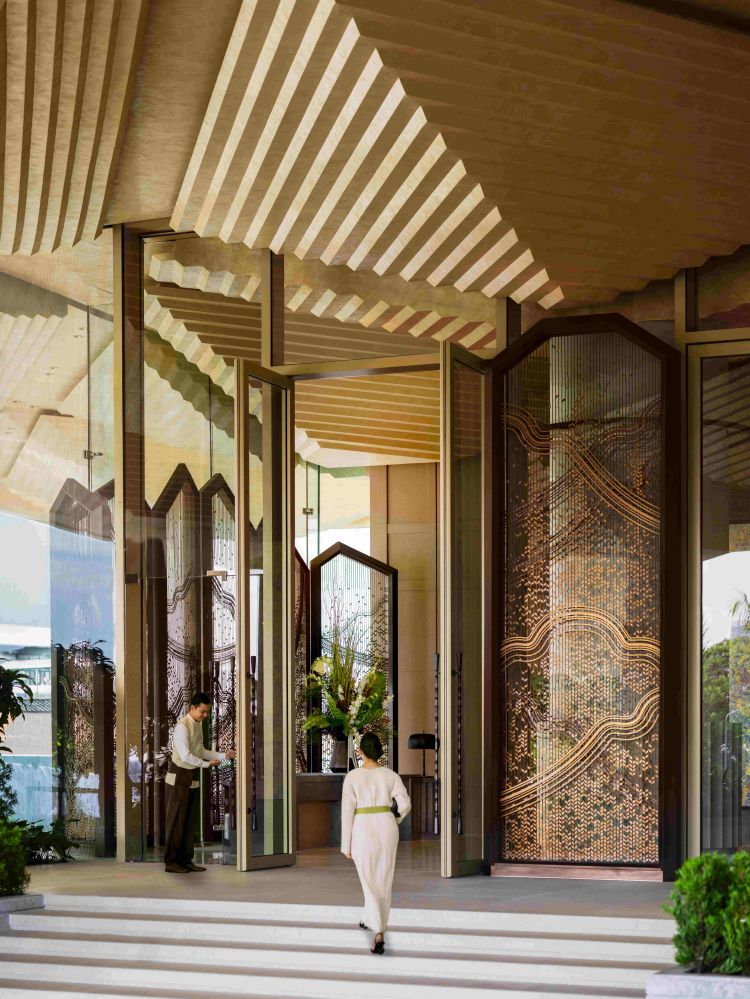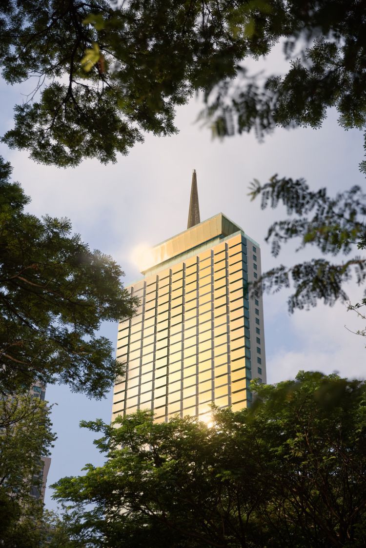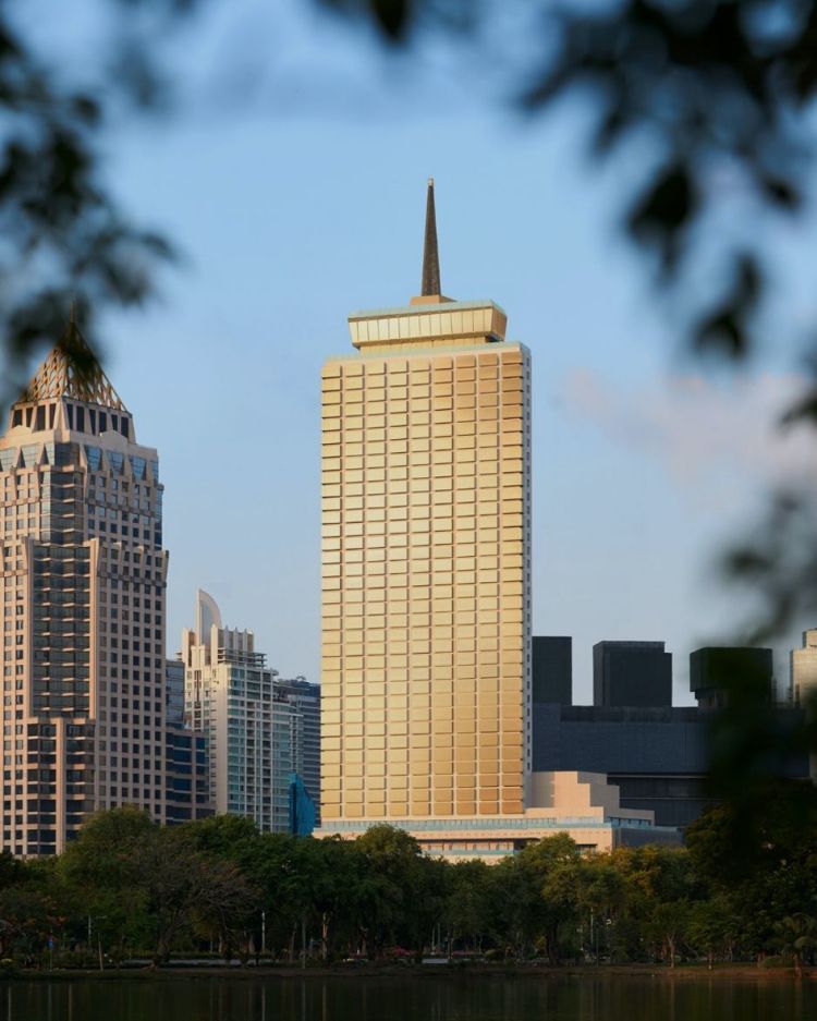 全新的曼谷都喜天麗酒店保留原先建築外觀上的金色尖頂設計,不僅透過設計彰顯其傳統,也將整座建築外觀染上一層閃耀的金色立面,看上去更加氣派,形塑一座閃閃發亮的建築量體。不僅可以眺望熱鬧的市中心與河畔,也能一覽無遺地欣賞原泰國皇室的御花園「倫披尼公園(Lumpini Park)」,展現絕佳的選址邏輯。