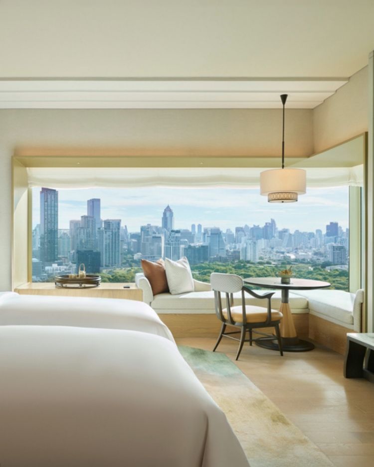 不同於過去酒店的 517 間客房,在全新曼谷都喜天麗酒店酒店裡,將其改為 257 間客房,讓所有旅人能擁有更寬敞且舒適的居住品質。除了擁有極致頂級的室內裝潢與傢俱設備,在設計師的打造下,「金色」的窗邊,將戶外的景緻凸顯出來,引入自然光線之餘,也呼應外牆立面的金碧輝煌,拉長旅人在房間裡居住的時間,靜靜地光觀賞曼谷的市容與景緻。