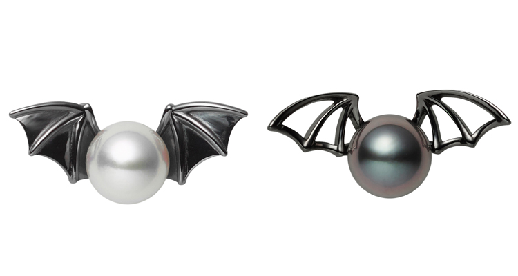 此外,還有以日本Akoya珍珠鑲嵌成蝙蝠圓潤身體的單邊耳環,以及貫徹魅黑視覺效果的黑南洋珍珠蝙蝠胸針,配以鏤空翅膀,詮釋小巧迷人的神秘風格。(左,NT$ 77,000、右,NT$ 33,000)
