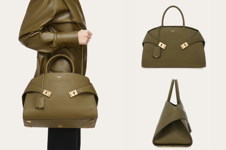 Ferragamo 以其優雅、經典的義大利風格,成為世界上最具代表性的奢侈品牌之一。自1927年創立以來,品牌一直專注於高質量皮革製品及時尚配件的創作。Hug Handbag 是2024秋冬系列的亮點,將經典設計融入硬挺的錘紋小牛皮,搭配金屬搭扣及皮革掛繩裝飾,呈現出輕盈不失大氣的風範。包款的設計摒棄了繁複的細節,將注意力聚焦於簡單而優雅的線條上,透過兩個飾有訂製 Gancini 扣環的皮革繫帶,環繞「擁抱」住整個矩形包袋,展現出 Ferragamo 一貫的經典格調。(商品售價約 NT$ 112,000元)