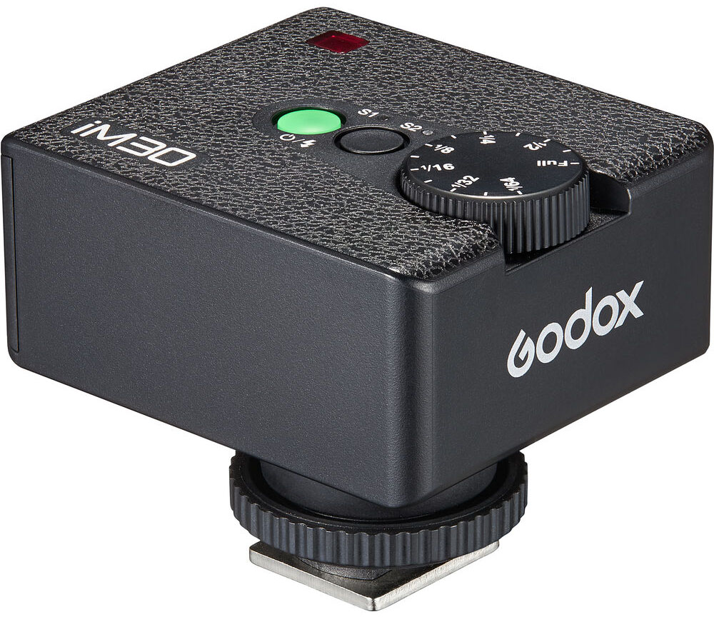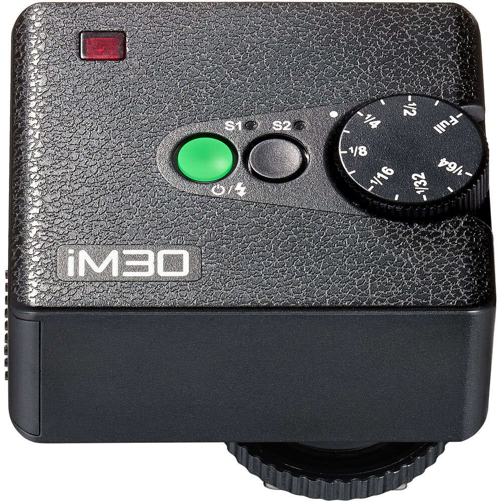 iM30另一大特色就是採用單點觸發設計,適用於所有具備熱靴的無反相機和底片相機。所有操控都位於頂部,顯而易見的大轉盤負責調整閃燈出力,共有1/64、1/32、1/16、1/8、1/4、1/2、Full七段功率等級可供調整,並且具有S1 / S2兩種光觸發模式。