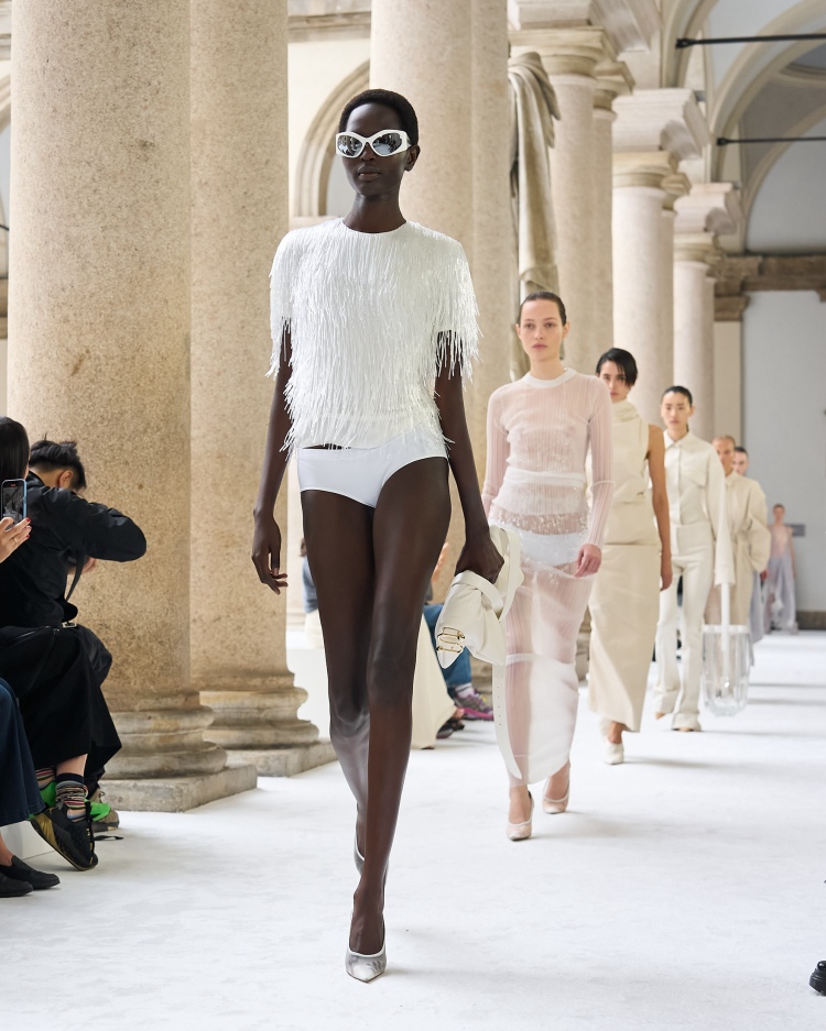 Sportmax作為Max Mara更前衛、先鋒的姐妹,2025春夏大秀延續著簡約的調性下,展現出鋒利卻很女人的性感態度,這一季秀場選在米蘭的布雷拉畫廊 (Pinacoteca di Brera),是米蘭人心目中的藝術殿堂,模特兒穿梭在百年雕塑拱廊,與藝術雕塑形成極簡與極繁之間的對比碰撞,以下五大重點是我們現場直擊的濃縮精華。