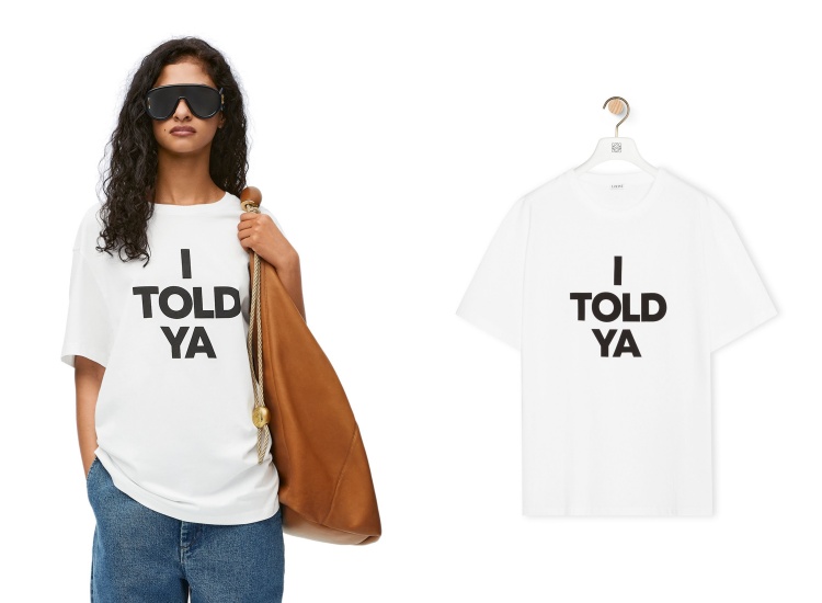 以工藝美學著稱的 Loewe,這款白 T-shirt 流露出品牌獨特的藝術氣質。T-shirt 上印有大大的「I TOLO YA」標語,以口語的「我告訴你」,為簡單的設計增添了充滿個性的強烈主張。柔軟的棉質面料配上寬鬆剪裁,加上背面低調的 Anagram 刺繡,讓這件 T-shirt 不僅是件時尚單品,更是值得細細品味的工藝品。(商品售價約 NT$ 10,300元)