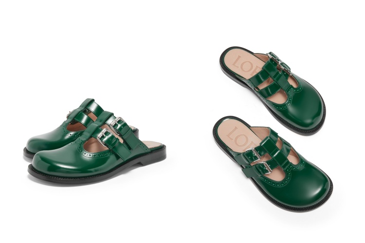 長年穩居精品界「文青」地位的 Loewe,以其藝術化的設計風格和高品質的皮革製品聞名時尚圈,不僅善於將傳統工藝與現代審美相結合,也經常創造出令人眼前一亮的獨特作品。像是這雙將瑪麗珍鞋與穆勒鞋融合的裸跟鞋,在少見的森林綠小牛皮鞋身與品牌標誌性的不對稱圓頭設計上,以經典的布洛克(Brogue)紋樣妝點,一眼望去鮮明卻不突兀,展現了 Loewe 對色彩運用的獨到見解。(商品售價約 NT$ 40,100元)