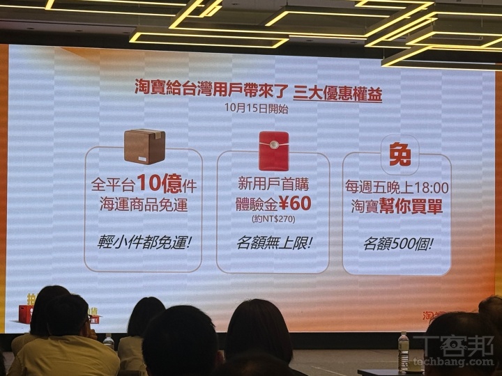 此外,淘寶也更加碼推出「首購開買啦大紅包」計畫,即日起新用戶註冊淘寶即送約新台幣 270 元購物體驗金與「首購免費本地退貨、稅費 0 元、免支付手續費」等三大免費服務。