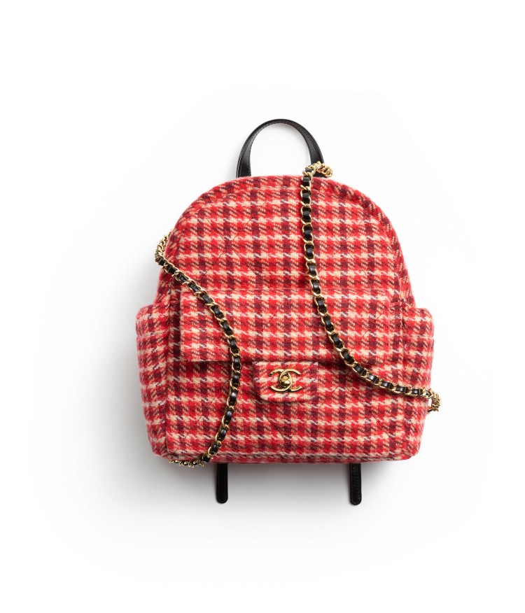 Chanel「Coco Neige」推薦09/紅色千鳥格紋雙肩背包