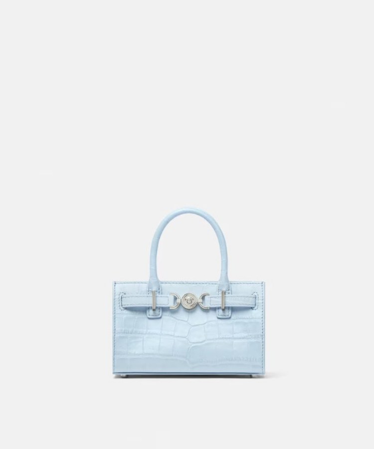 Versace近幾年透過「年輕化」設計,把招牌的性感狂野風格做出不一樣的時髦風範!好比朴信惠在劇中背的這款Medusa ‘95迷你托特包,運用粉嫩水藍、獨特橫版包身和美杜莎標誌,既致敬黛安娜王妃鍾愛的1995年Versace手袋,也帶出率性活潑的年輕風格,姜光娜也巧妙搭配同樣水藍色系的排扣套裝,看起來格外溫柔!(售價:NTD$47,000)
