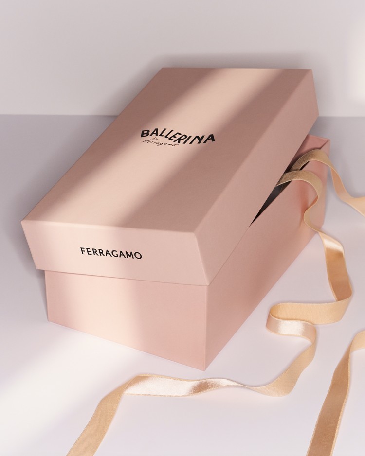 在秋冬來臨之際, Ferragamo 將目光看向再次看向標誌性的「芭蕾舞鞋」,為了其系列鞋款的新色上市,品牌亦運用可愛的粉色鞋盒為包裝,並運用 Salvatore Ferragamo 於 50 年代中期親自設計的「Ballerina by Ferragamo」Logo 標誌作點綴,藉此致敬品牌創辦人對於製鞋的頂級工藝。