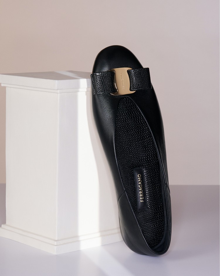 在今年秋冬,Ferragamo 在「芭蕾舞鞋」的設計上,推出多款全新的面料,例如奧黛麗赫本同款的平底鞋,改以美麗諾羊毛製作,其絨毛面料增添其可愛的氣息,另外經典的「Vara」蝴蝶結系列鞋款,則以雙色拼接呈現,並加入抓皺的設計,將優雅愈年輕的俏皮氣息合而為一。