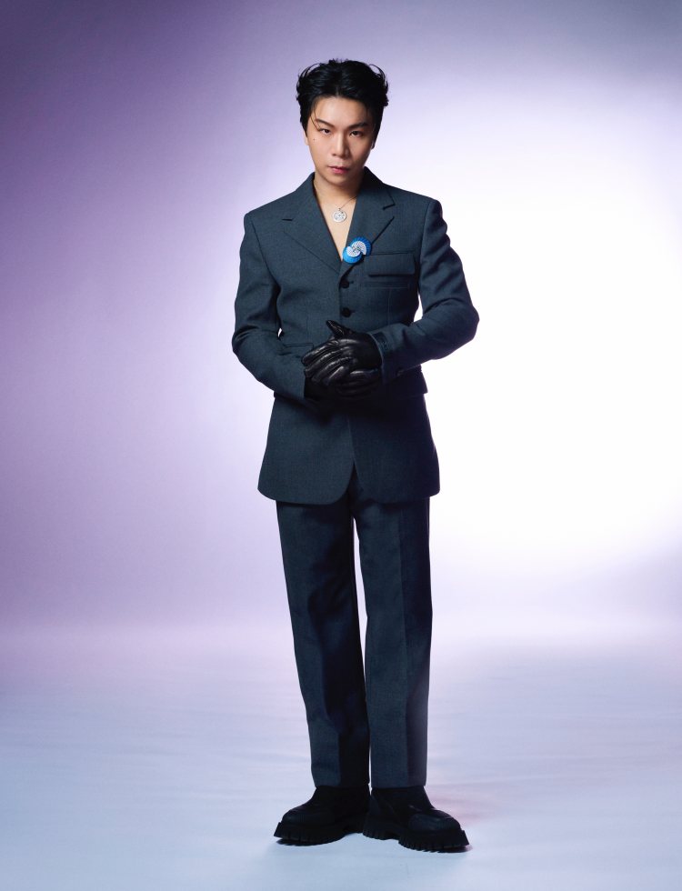派翠克在《小姐不熙娣》主持表現可圈可點,本次他搭擋小S走上紅毯,穿著Versace深灰色多口袋西裝,搭配皮革手套和厚底靴,讓正裝風格多了一點潮流個性。西裝翻領與脖子上配戴來自De Beers鑽石胸針與鑽石珠寶項鍊,在深色調穿搭中點綴一抹寶藍光采,以奢華珠寶呼應典禮大場合的正式感,無論是主持表現還是紅毯造型,派翠克既扮演好「最佳綠葉」,同時又不失個人風采,收放之間的分寸拿捏相當厲害!