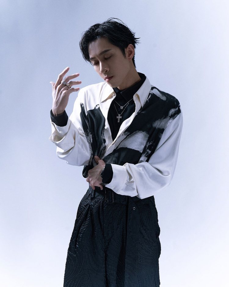 陳柏霖的穿搭向來很有品味,他這次選擇日本設計師品牌山本耀司(Yohji Yamamoto)POUR HOMME 2024/25男裝系列,黑色襯衫和黑色及地大衣以長版剪裁,顛覆正規西裝的輪廓,大衣內側隱約透出紅黑相間的線條,走起路來瀟灑又俐落。而他特別在最裡面疊搭一件白色襯衫,藉由「領口」創造對比亮點,搭配All Back長髮和黑框眼鏡,展現如藝術家般的文藝氣質,與愛犬Afuri的同框畫面更是萌度十足!