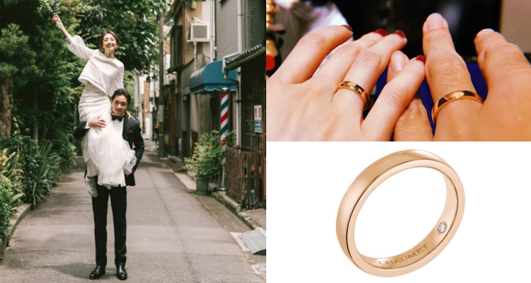 演員楊祐寧當初正式宣告與Melinda登記結婚及即將要當爸的消息時,兩人手指上戴的正好就是「明星婚戒御用品牌」-尚美(Chaumet)的「Torsade」對戒系列。有別於一般的婚戒,該系列的設計較為內斂,以靈動之姿,重新演繹品牌作品中歷史悠久的螺旋圖案。 其細膩又溫潤的金色調,就如同被溫暖陽光渲染的天空般,照亮著彼此相愛的楊祐寧及Melinda,願永遠幸福美滿。(婚戒價格依鑽石克拉數大小而訂)