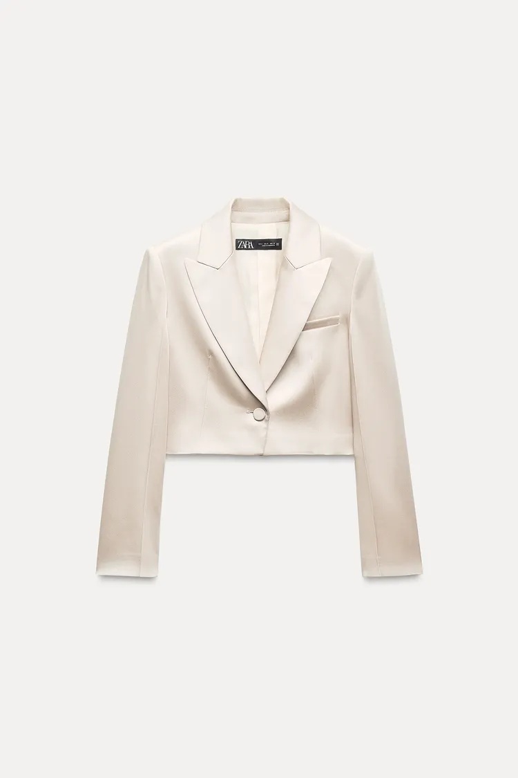 Zara 2024秋季西裝外套5. 短版緞面西裝外套
