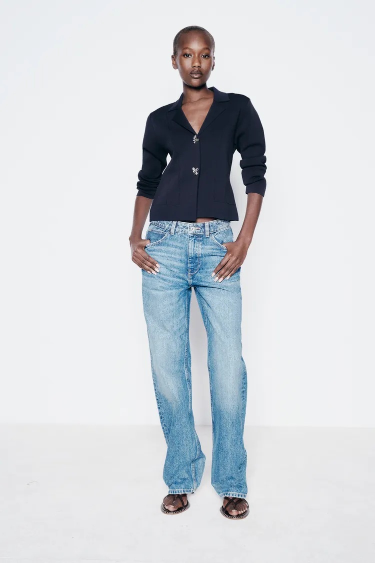 Zara 2024秋季西裝外套1. 花卉紐扣針織西裝外套