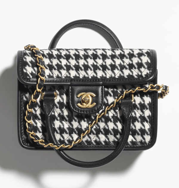 每位女孩們的夢想包款清單,香奈兒(Chanel)絕對名列其中,這季秋冬,則將經典的黑白色千鳥格斜紋軟呢變為包包的面料,外觀縮成可愛的方正型,更在包蓋上增添手把,可提可兼揹,好讓人心動,超想擁有啊〜