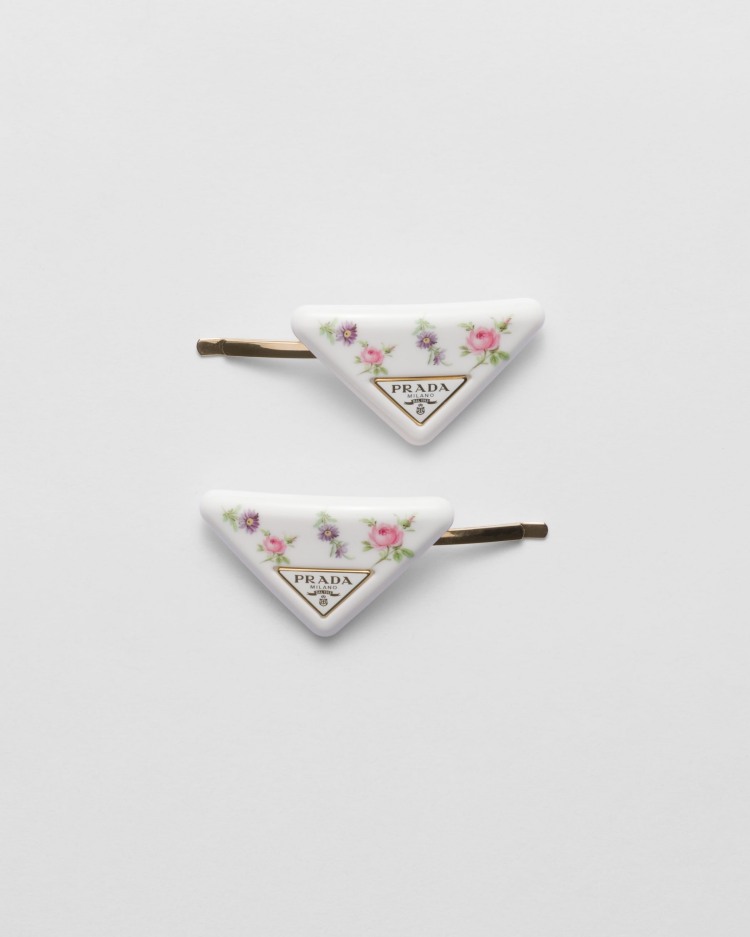 Prada 2024「Logo髮飾」推薦2.:玳瑁三角髮夾