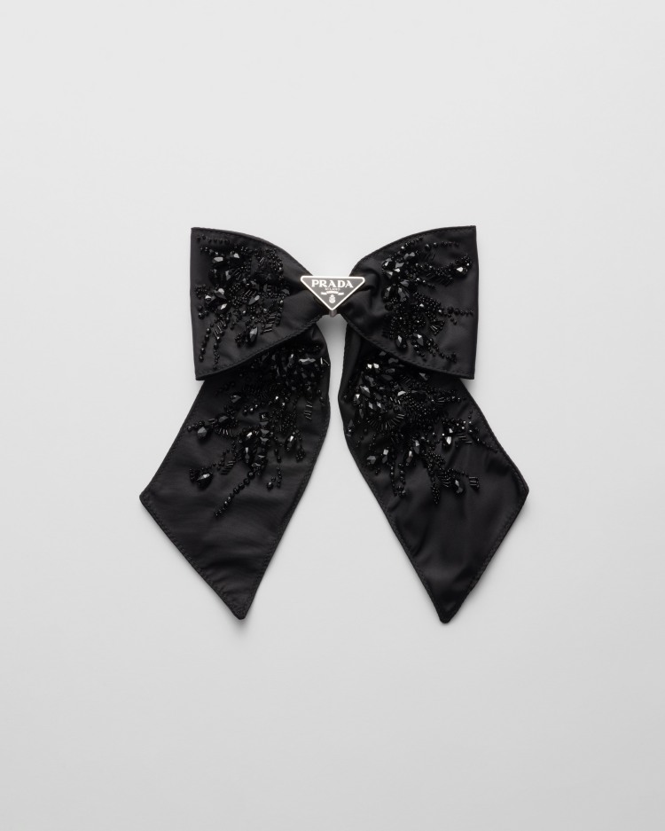 Prada 2024「Logo髮飾」推薦5.:珠繡蝴蝶結髮夾