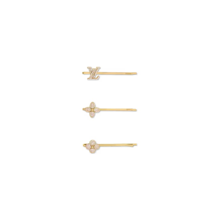 Louis Vuitton 這款三入一組的髮夾,以品牌標誌性的 Logo 及花朵符號為主軸,搭配上水鑽鑲嵌的點綴,宛如珠寶的設計,讓人眼睛為之一亮。(商品售價:NTD16,100)