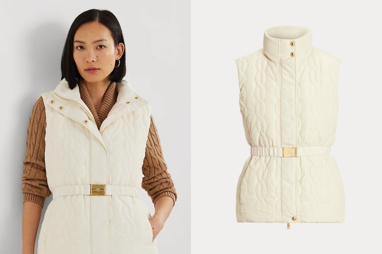 Polo Ralph Lauren 這件以絞花絎縫粗花呢為主題的羽絨背心,詮釋了一種低調卻奢華的美感。「650 蓬鬆係數」的鴨絨填充,使得這款背心在寒冷冬日裡顯得格外蓬鬆與溫暖。其特殊的腰帶與正反面的公主線設計,優雅地勾勒出穿著者的身形輪廓,彷彿一件專為冬日而設的精緻外衣,搭配上鐫刻「LRL」字樣的金屬釦,展現出 Polo Ralph Lauren 的經典「老錢」(Old Money)風範。(商品售價 NT$ 13,980元)