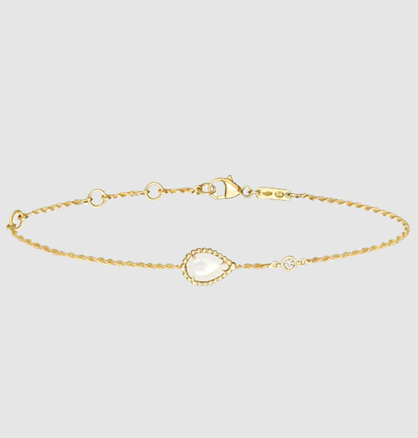 寶詩龍(Boucheron)將品牌經典的蛇頭圖案,化身為「Serpent Bohème」手鍊系列設計中的水滴造型。除了有原本的鑲鑽版,後來更推出鑲嵌數種色系活潑的彩色寶石,如同這次的珍珠母貝,約莫5萬初的價格,不僅好入手,也是儂粉們日常配搭的簡約之選,沉靜、低調、展現自我魅力。