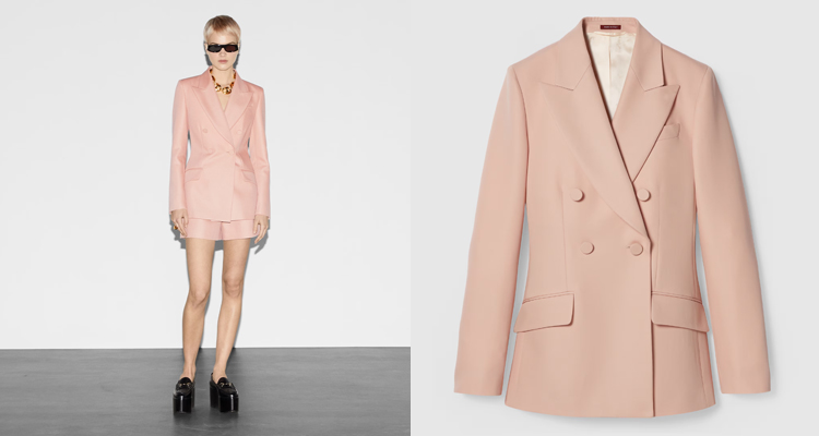簡約不等於無聊,但說起西裝外套,又怎能不提到由現任創意總監薩巴托 · 德 · 薩爾諾(Sabato De Sarno)執掌之下的俐落古馳(Gucci)呢?在沉悶的冬季中,這一襲玫瑰粉色雙排扣西裝外套,無疑為此帶來一絲浪漫情懷。這件西裝外套作品,正是Sabato發佈品牌首秀的其中一款單品,意義自然重大。採以淺玫瑰色的羊毛馬海毛材質製成,服貼卻舒適的穿著觸感,也為著名的品牌元素和標誌注入現代女性的氣息。