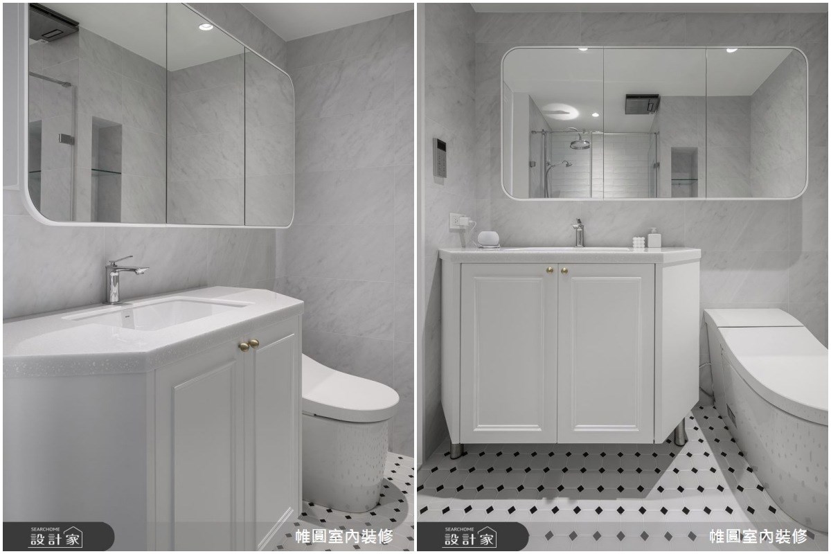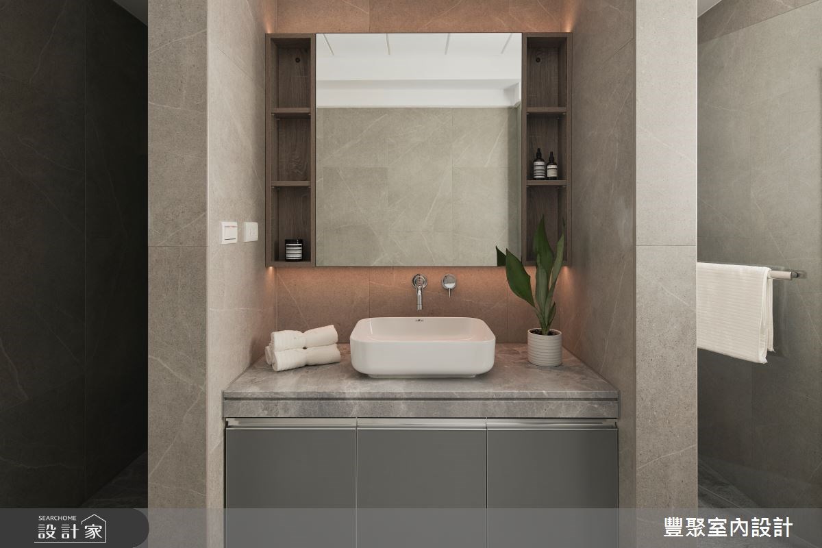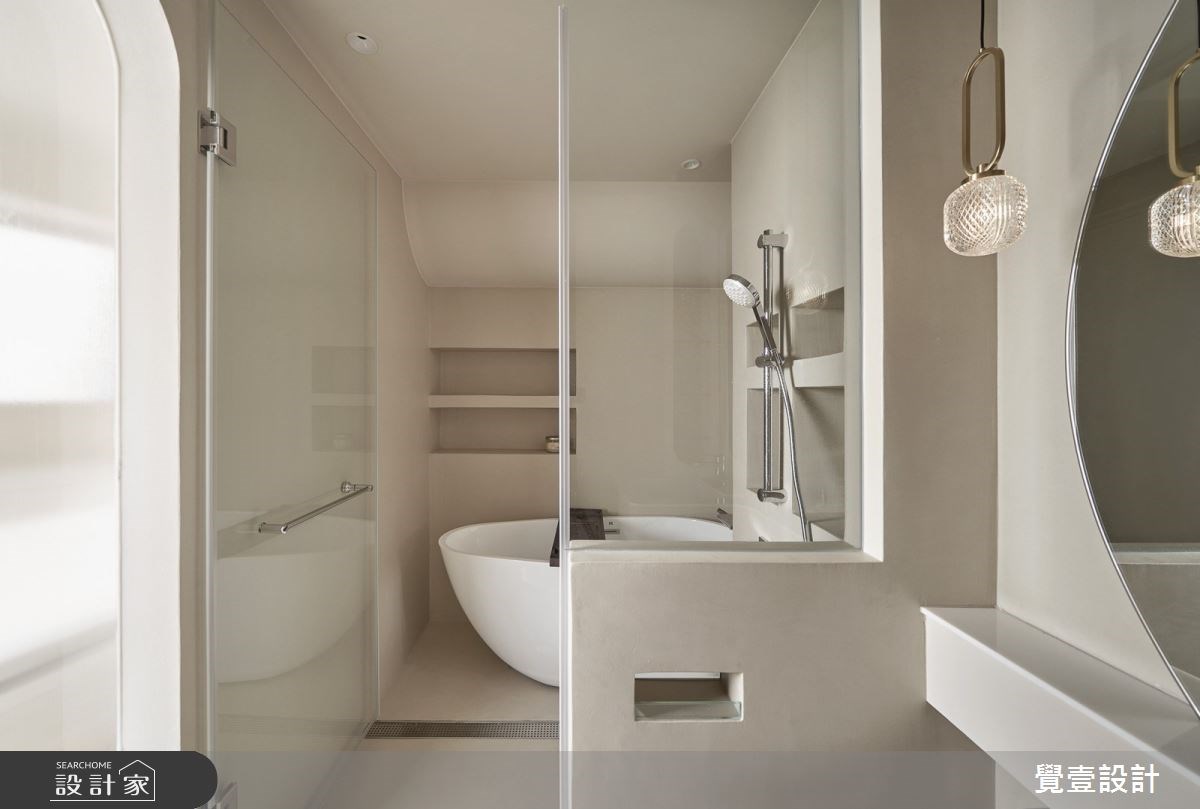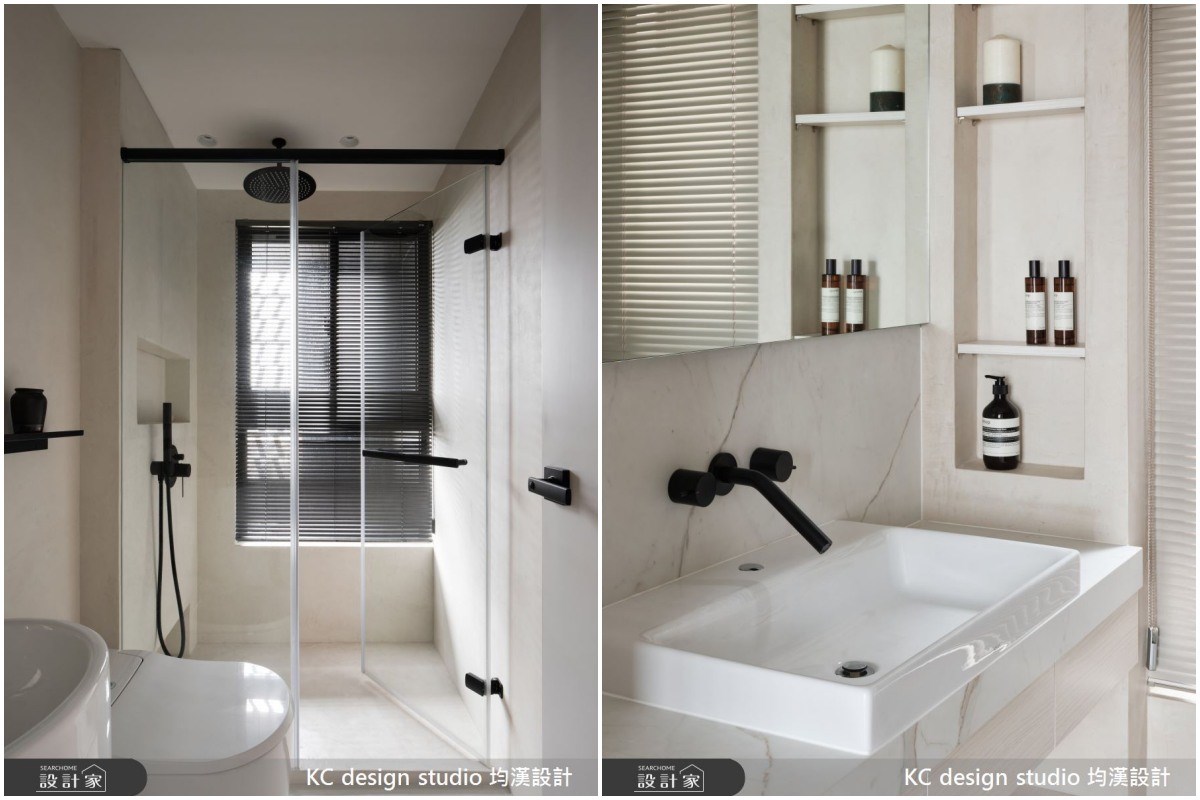 浴室空間不足的狀況下,可以利用壁龕設計,將牆面做內凹的設計創造置物空間,切記深度不宜過深或過淺,淋浴間內的壁龕至少要15-20公分的深度才能放置瓶罐,而牆壁厚度至少要有30公分以上,才適合作壁龕收納。洗手台區的壁龕則可以稍微做深一點,高度也可以隨身高調整,將平面化收納是小坪數浴室增加收納機能的妙招。