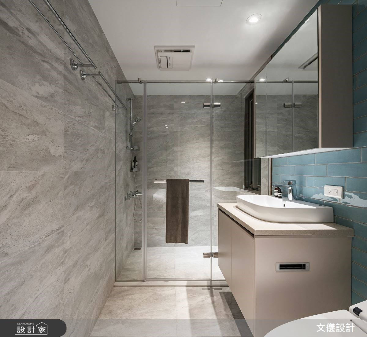 浴室淋浴間中的收納通常會設計收納五金,運用轉角、牆面來擺放沐浴乳、洗髮精等沐浴用品,淋浴門外也可以加裝五金桿用來掛浴巾、或是在外牆安裝金屬掛鉤懸掛衣物或浴袍,安裝位置記得要根據使用者身高設定,也要注意洗頭轉身時手肘不會撞到收納配件為主喔!