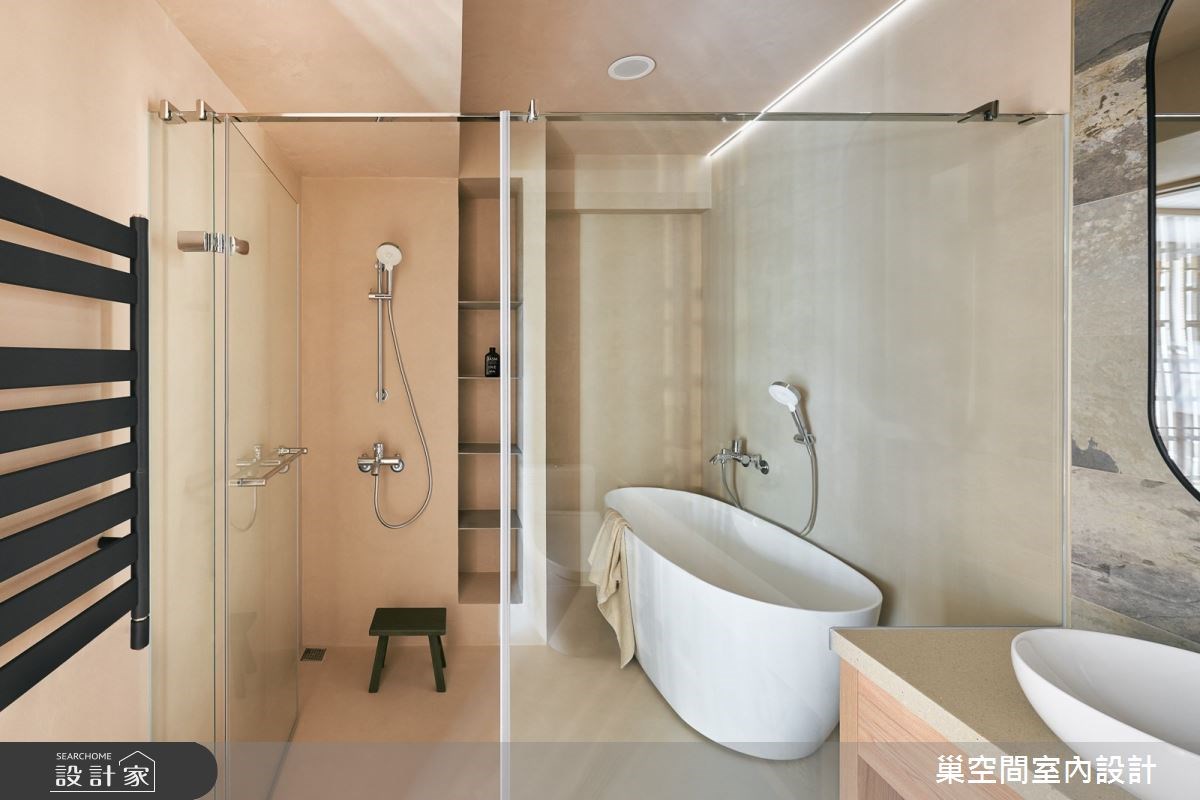 在規劃浴室的淋浴區或浴缸區時,合理的空間配置與乾濕分離設計是重點。淋浴間的尺寸應至少為90cm x 90cm,並配備高達190公分的淋浴門,以防止水花濺入乾區,保持浴室整潔。小坪數浴室絕對適合橫向拉門,除非有足夠的迴轉半徑才建議使用開闔門。