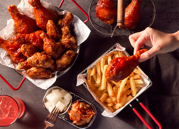 成立於1995年的「bb.q Chicken」,以驚人的展店數成為韓國最大的炸雞連鎖品牌,目前全球已有約4,000家門市風靡各地。更因韓劇《孤單又燦爛的神-鬼怪》劉寅娜經營的炸雞店而爆紅,吸引眾多劇迷朝聖。招牌款式首推「韓式甘醬炸雞」,這款炸雞裹上韓國特製的甘甜辣醬,香脆的外皮包裹著多層次的甜辣口感,讓人吃上一口便回味無窮。而同樣有高人氣的「蜂蜜蒜味炸雞」,以淡淡生蒜香氣與香甜蜂蜜交織,讓酥脆的外皮中蘊含著濃郁香甜的餘韻,每一口都是極致的滿足。