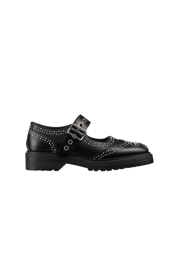 D-Society黑色小牛皮珍珠與鉚釘瑪莉珍鞋
