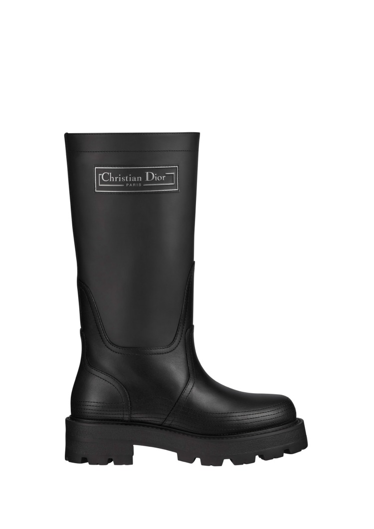 本次系列移師蘇格蘭來作秀,因應當地濕冷的氣候,自然少不了類“雨靴”的單品,好比說上圖這一款長靴,以仿膠質感的小牛皮的面料、加厚的鞋底,以logo點綴在側邊,是酷女孩率性時髦的。好選擇。(價格:NT$58,000)