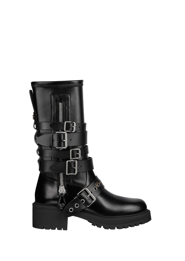 龐克元素是秀上不容小覷的一環,也體現在鞋履設計上,好比說上圖軍裝感的中筒皮靴,有著多層次的皮革綁帶細節,加上些微厚底感的設計,非常搖滾、非常酷帥的靴款,讓酷女孩們難以抵擋!(價格:NT$62,000)