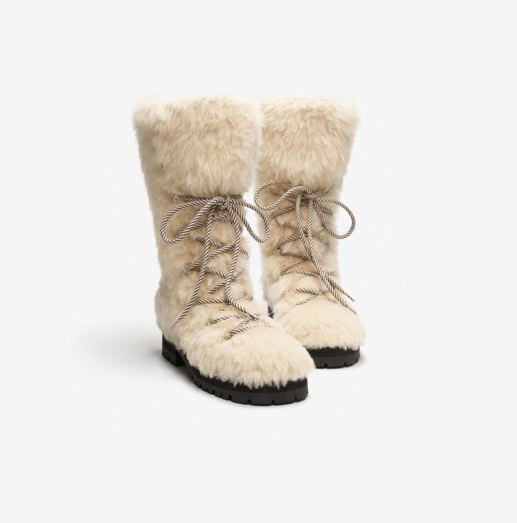 每年滑雪季就是香奈兒CHANEL Coco Neige的時髦主場,今年我們特別想推薦這雙「毛絨長靴」,鞋身造型是又酷又帥的軍靴風格,外層披上澎澎白色綿羊毛外衣,搭配雙色綁帶鞋帶,格外有種可愛甜美的反差感,搭配裙裝或是毛毛外套,既優雅又氣質,也能夠搭配運動套裝,穿出不一樣的休閒風格,擁有非常高的搭配性!(價格:NT$83,200)