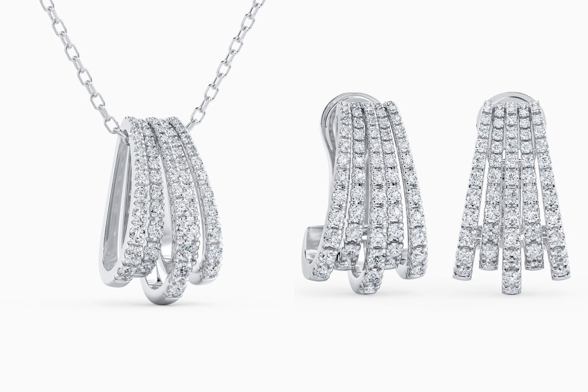 由五行流暢線條構成的經典Five Lines系列,帶點弧度曲線更顯份量感,為簡約穿搭襯托出造型感。本季也推出兩款新佳作,Five Lines五行鑽石耳環於不同長短線條上鑲嵌上圓形明亮式鑽石,非常合適年末各式的派對穿搭;Five Lines鑽石吊墜項鍊,以五個鑲有鑽石的圓圈垂懸於18K白金細鍊上,非凡的閃耀立體感,不管正式或休閒都能完美搭配。
