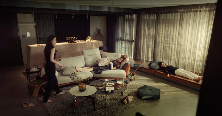 薛亞之(謝盈萱飾)和李子齊(薛仕凌飾)的家在劇裡擁有不少篇幅,這棟位在台北市敦化北路靜巷內的高級豪宅「涵峰」,每戶權狀都有百坪以上,擁有3或4房以及一梯一戶的配置,目前實價登錄一坪為140.8萬,一戶要價1.8億。從開放式格局、藝術擺設,再到大理石、玻璃隔間和特殊漆面等裝潢細節,都充滿了精緻奢華的都會風格,既彰顯了兩人身為電影導演、電影公司老闆兼大製作人的事業成就,也巧妙帶出其獨特的審美好品味。